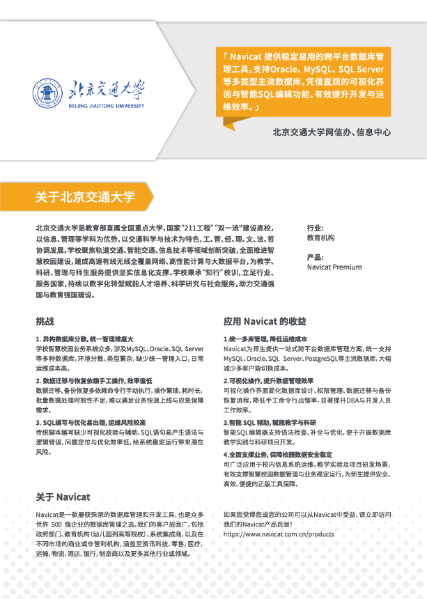 Navicat 案例研究- 北京交通大学