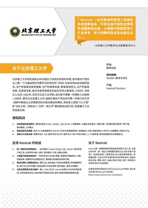 Navicat 案例研究- 北京理工大学